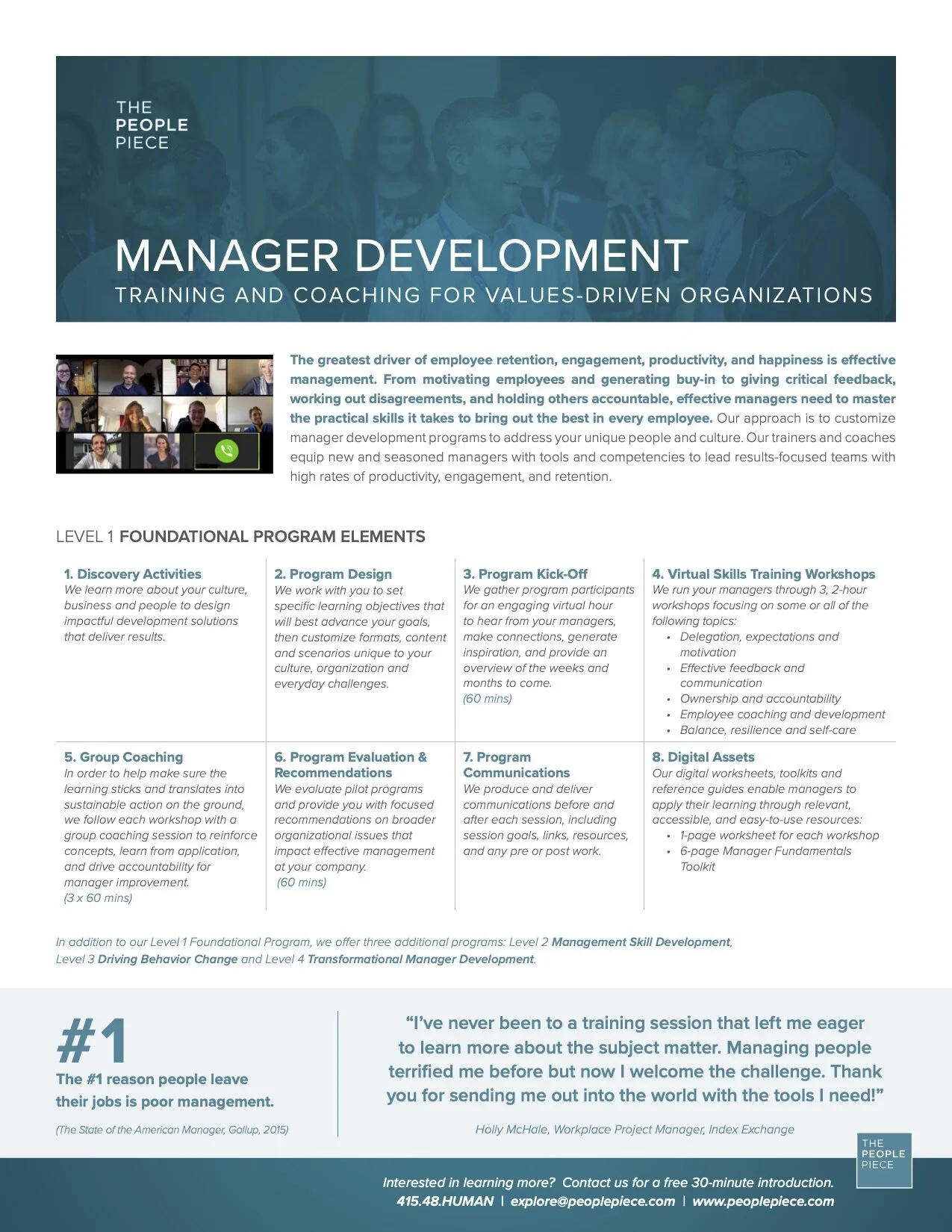 Managers have an outsize impact on the employee experience. We design and facilitate customized manager development programs that integrate your company’s values with our expertise to develop managers who feel confident in their role and do an outstanding job developing, retaining, and engaging your talent.